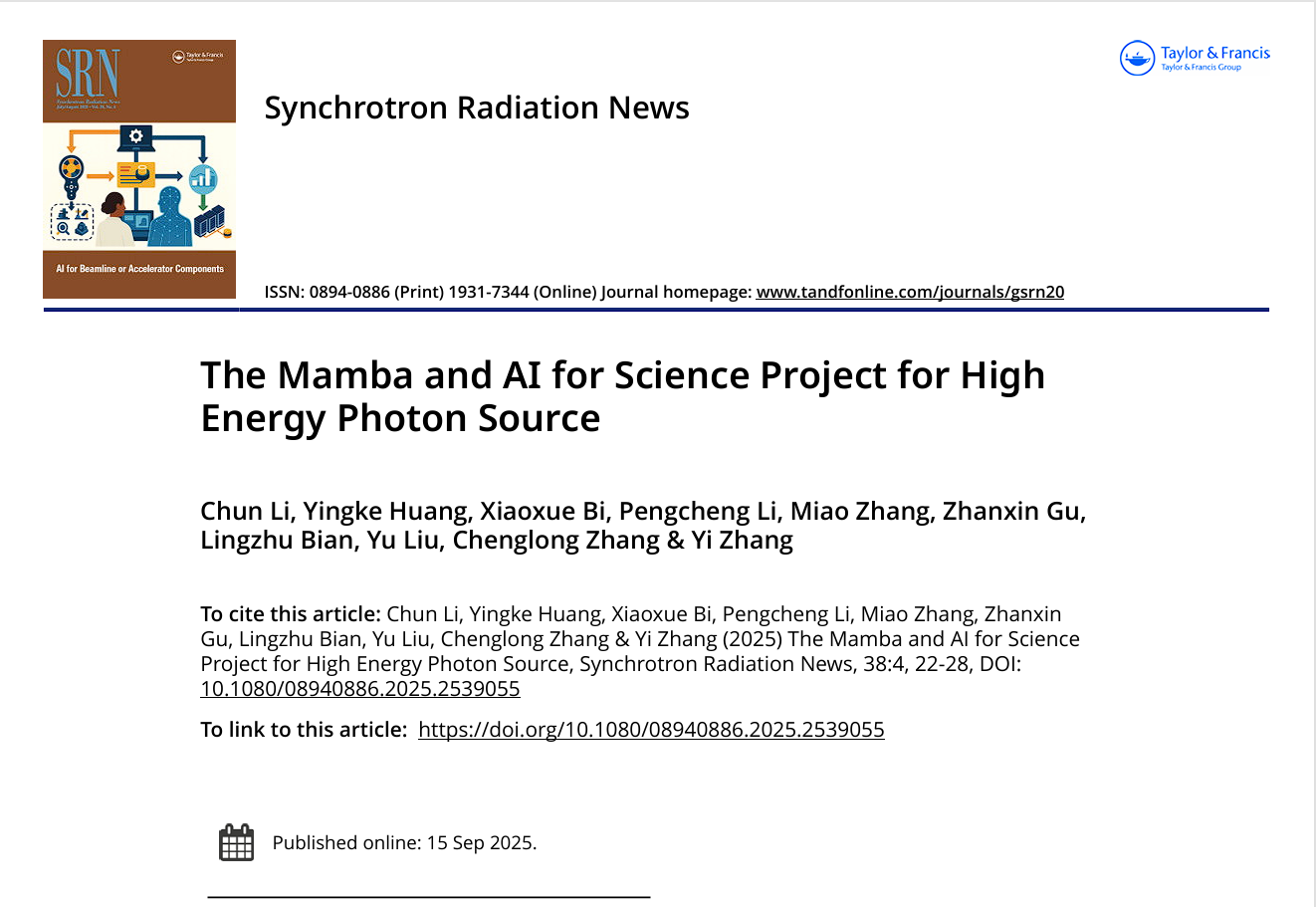 HEPS软件团队成员李纯,日前在同步辐射领域权威期刊《Synchrotron Radiation News》上发表了题为“The Mamba and AI for Science Project for High Energy Photon Source”的技术报告。该论文系统介绍了团队为高能同步辐射光源自主研发的统一软件生态系统“Mamba”及其引领的“AI for Science”项目。